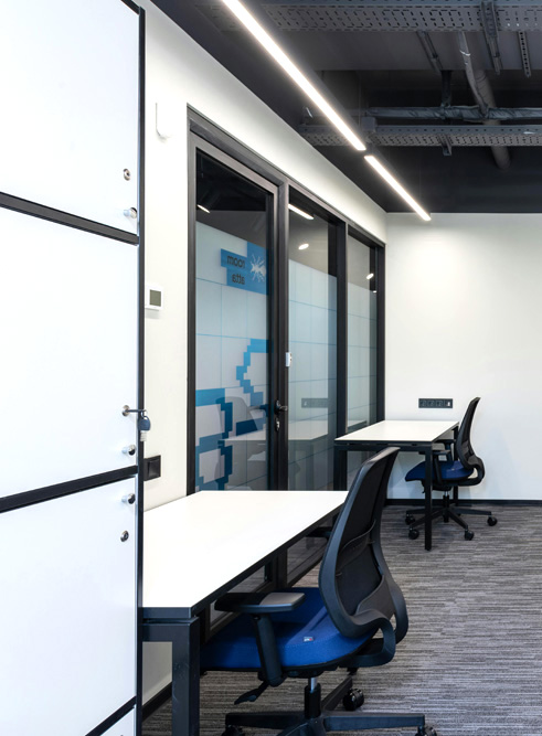יצירת חדרי ישיבות שקטים, קליניקות או משרדים פרטיים המאפשרים דיסקרטיות מלאה וריכוז מרבי, תוך שמירה על תחושת פתיחות בחלל.